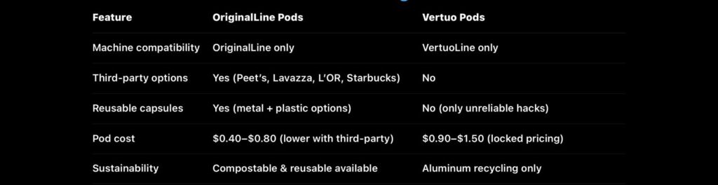 The answer depends entirely on whether you own an OriginalLine or a VertuoLine machine. The two systems are not cross-compatible, and the pod ecosystems are dramatically different.